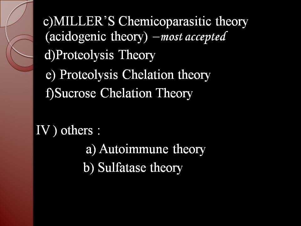 c)MILLER’S Chemicoparasitic theory (acidogenic theory) –most accepted