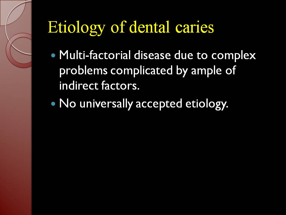 Foregoing through dynamics of epidemiology of dental caries, which has been primarily descriptive, is indicative of variety of causative factors for Dental caries.
