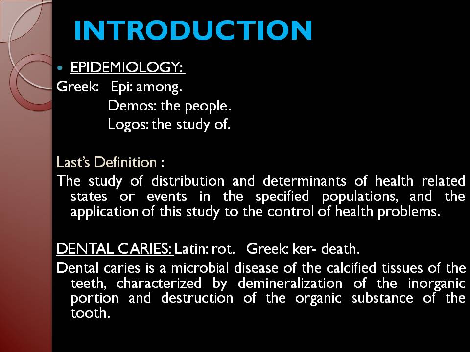 DENTAL CARIES: Latin: rot. Greek: ker- death.
