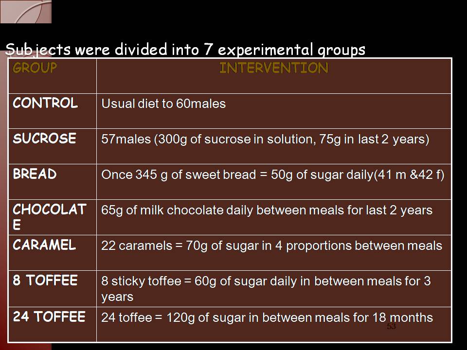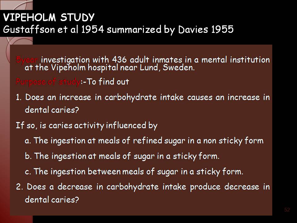 5year investigation with 436 adult inmates in a mental institution at the Vipeholm hospital near Lund, Sweden.