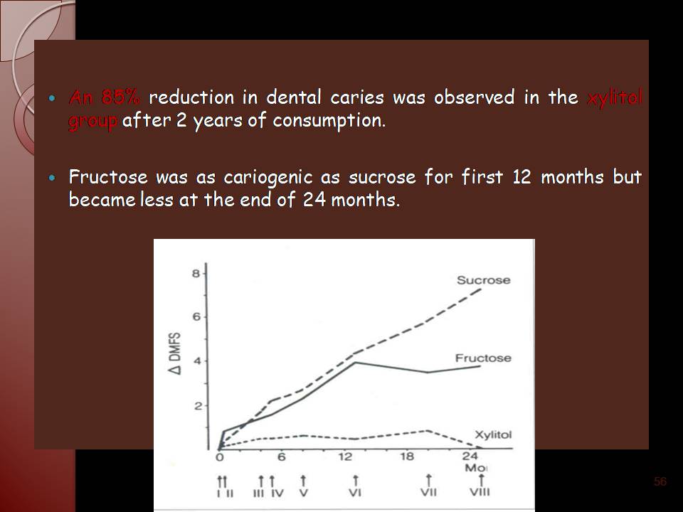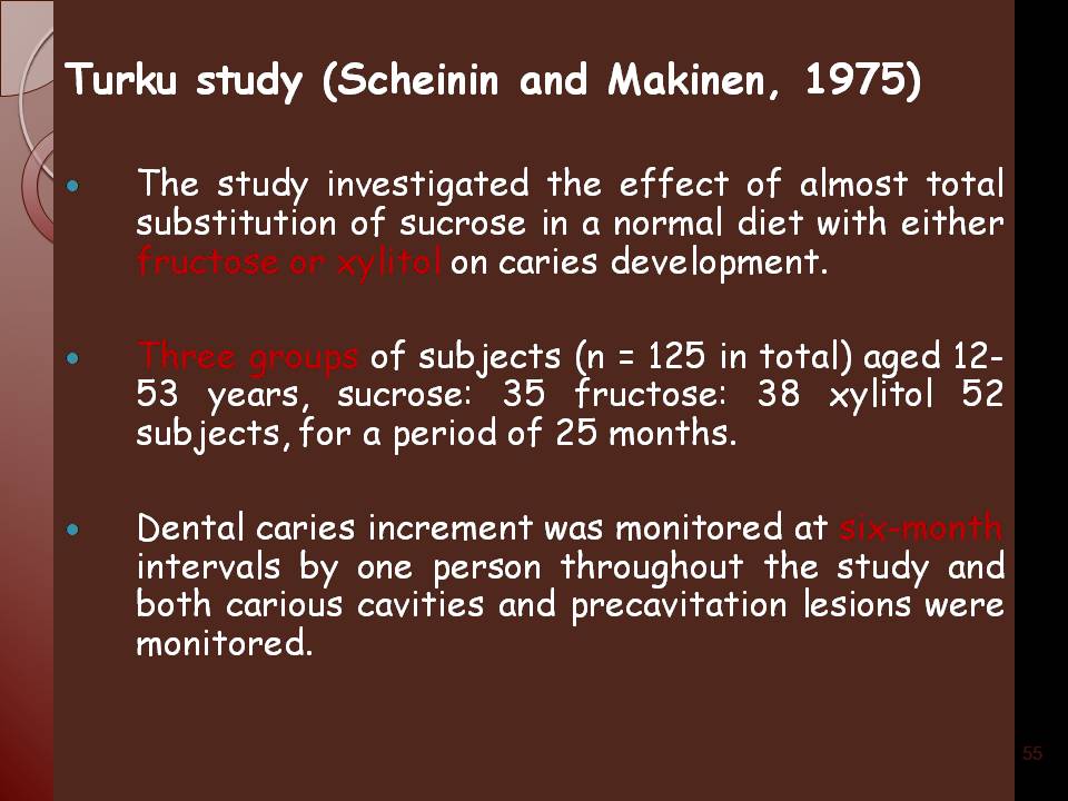 12-53 years, sucrose: 35 fructose: 38 xylitol 52 subjects, for a period of 25