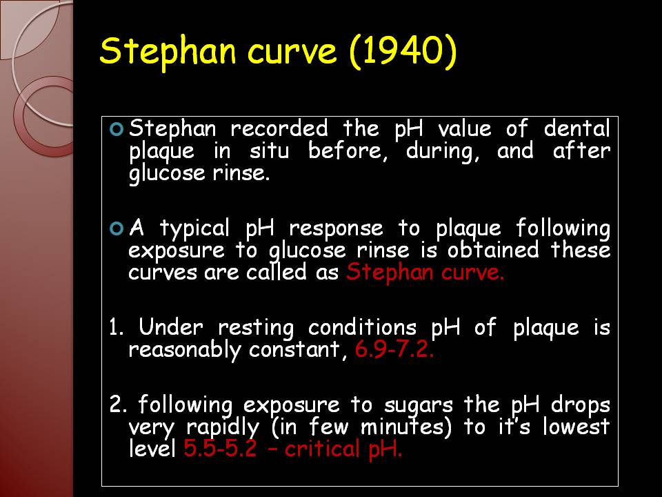 1. Under resting conditions pH of plaque is reasonably constant, 6.9-7.2. ¢