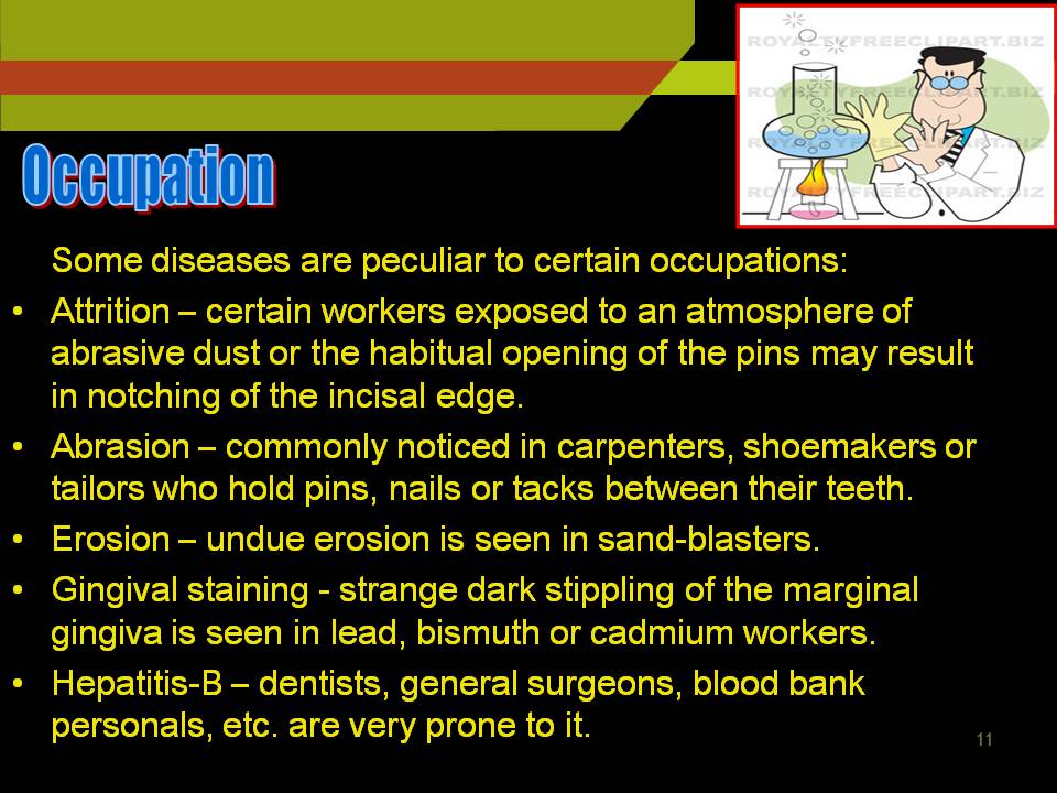 Hepatitis-B – dentists, general surgeons, blood bank personals, etc. are very prone to it.