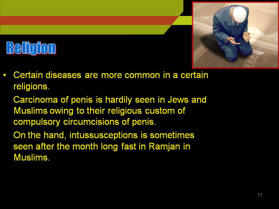 Carcinoma of penis is hardily seen in Jews and Muslims owing to their religious custom of compulsory circumcisions of penis.