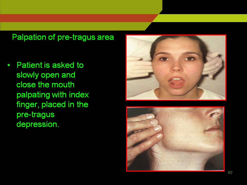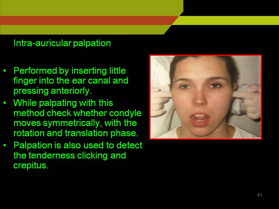 - Probe inserted parallel to vertical axis of the tooth and walked around each surface of each tooth.