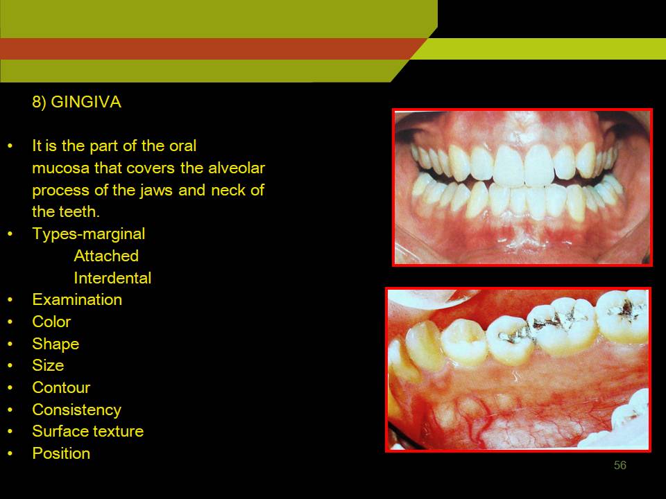 Gingival staining – strange dark stippling of the marginal gingiva is seen in lead, bismuth