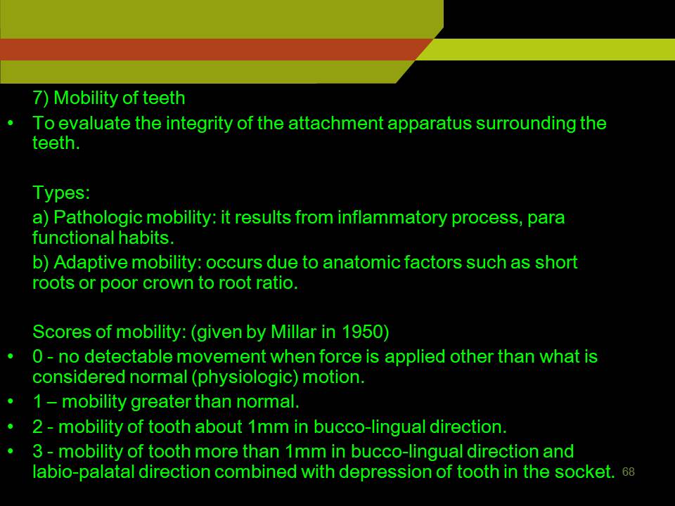 a) Pathologic mobility: it results from inflammatory process, para functional habits.