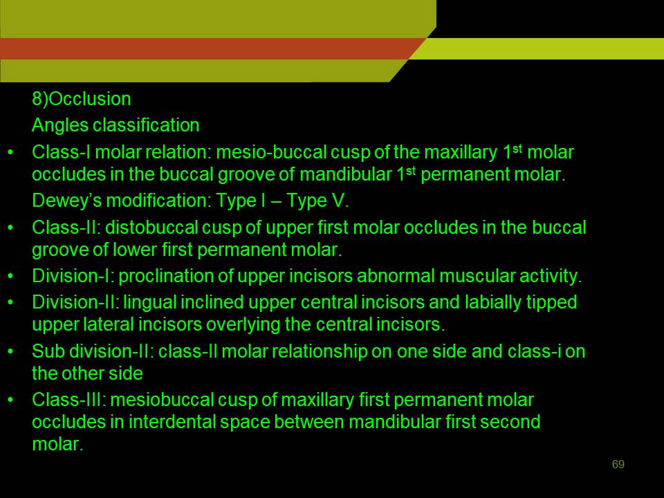 - Division-I: proclination of upper incisors abnormal muscular activity.