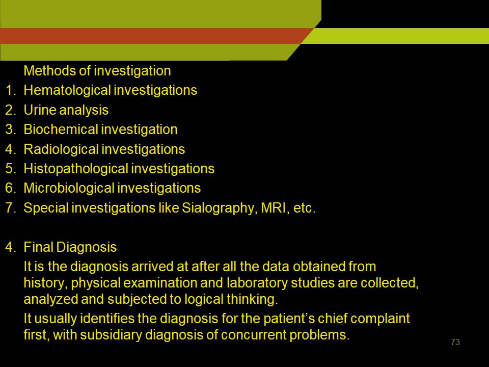 - Proper interpretation of the symptoms, signs and investigation, is a must for proper diagnosis.